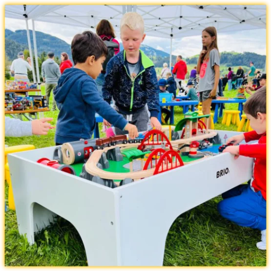 Wir bieten die Möglichkeit, unsere hochwertigen Spielstationen sowie Faltpavillons usw. anzumieten.