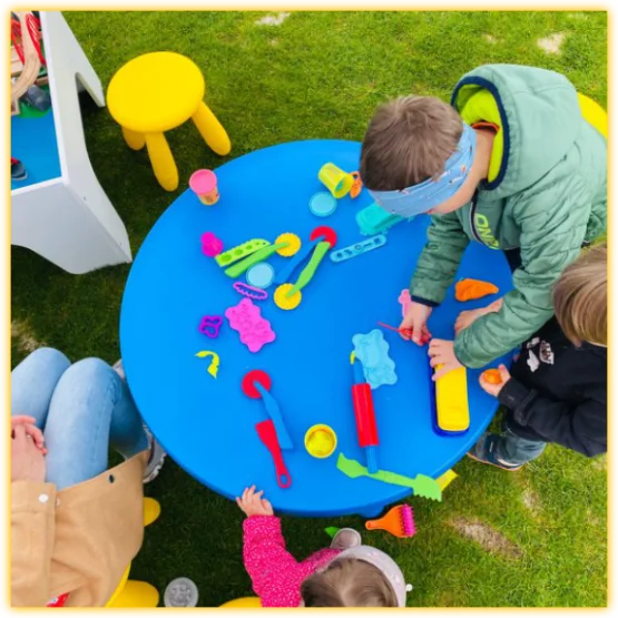 PLAY DOH Spieltisch inkl. 4x Hocker, Knetwerkzeug und 2x 4er Pack PLAY DOH-Knete: € 30,00